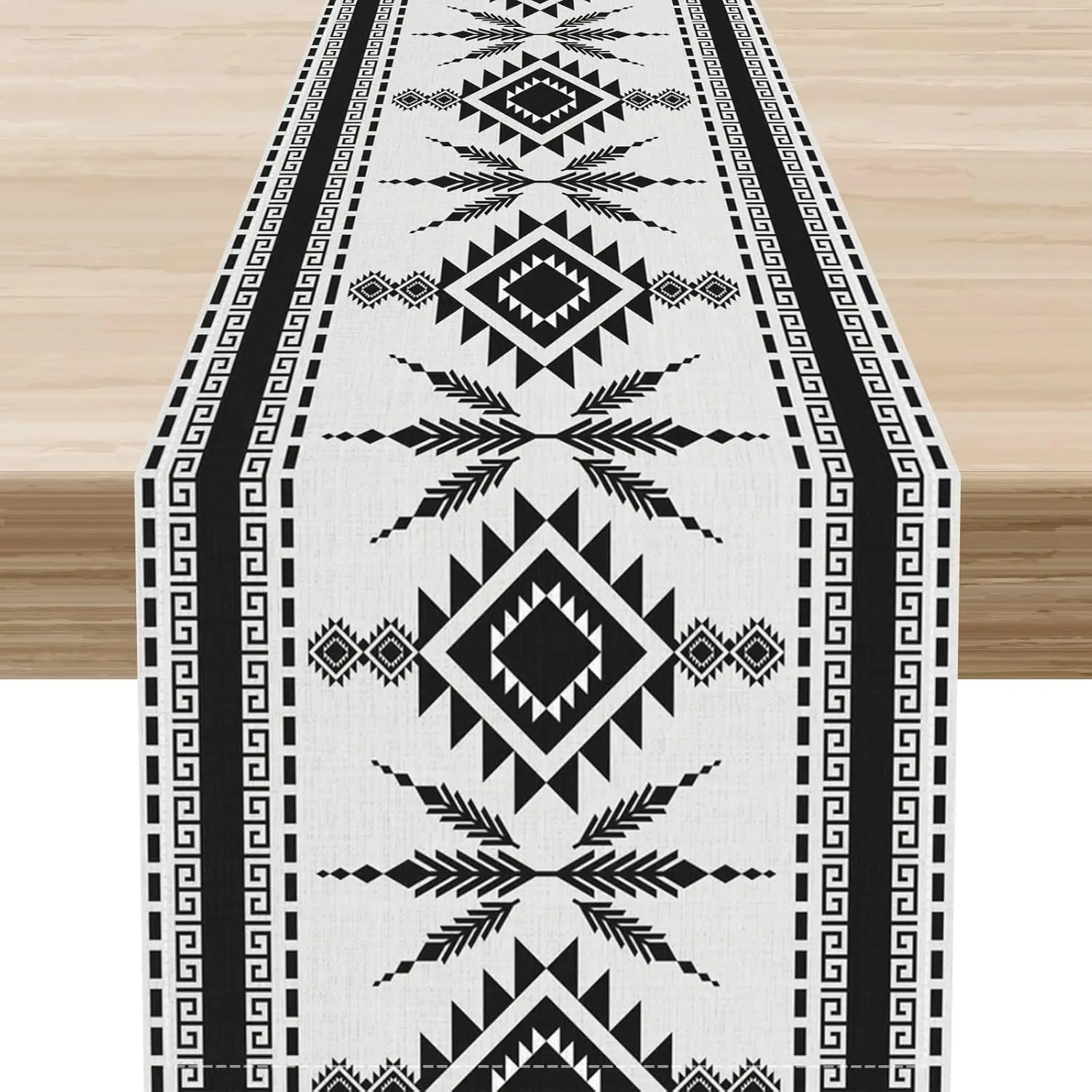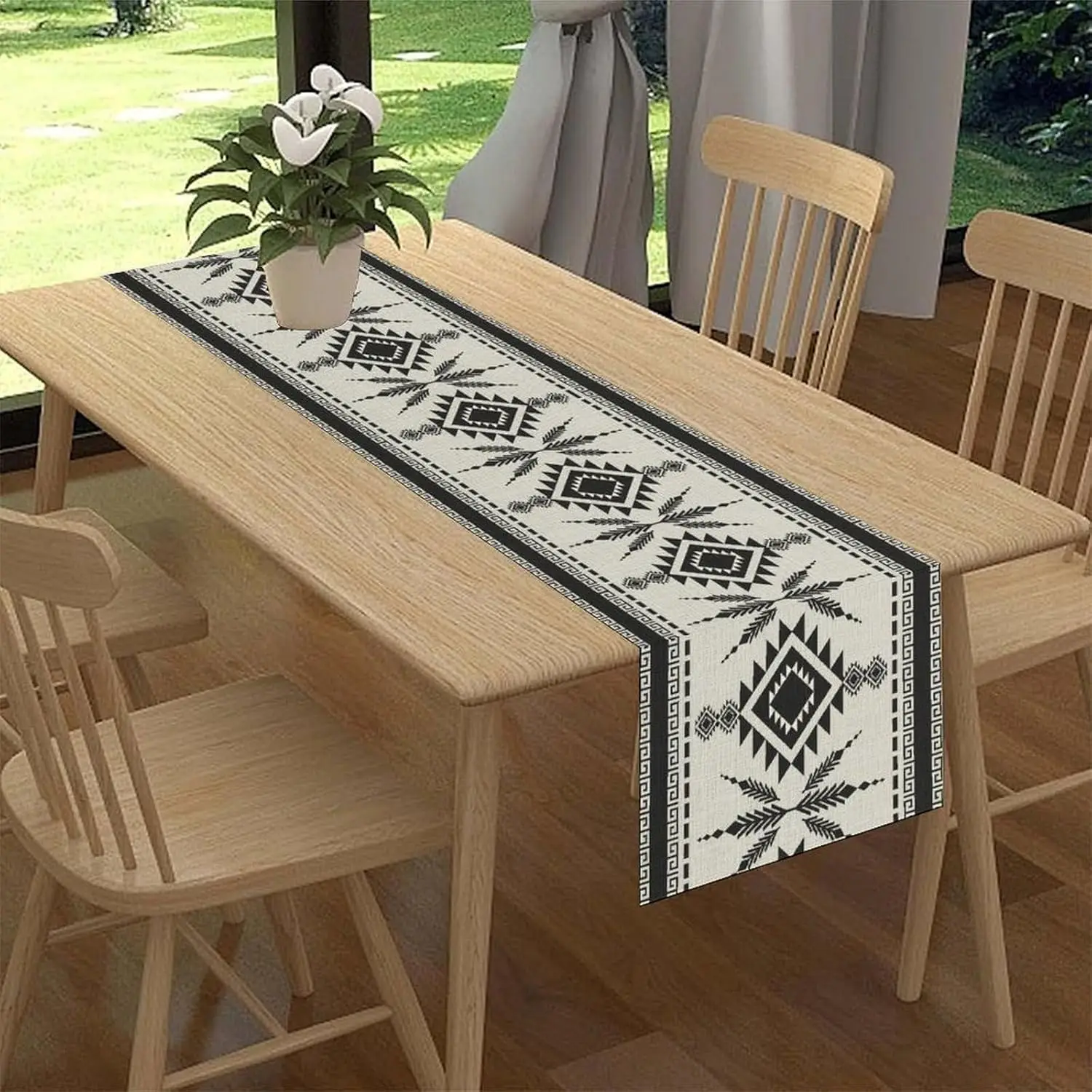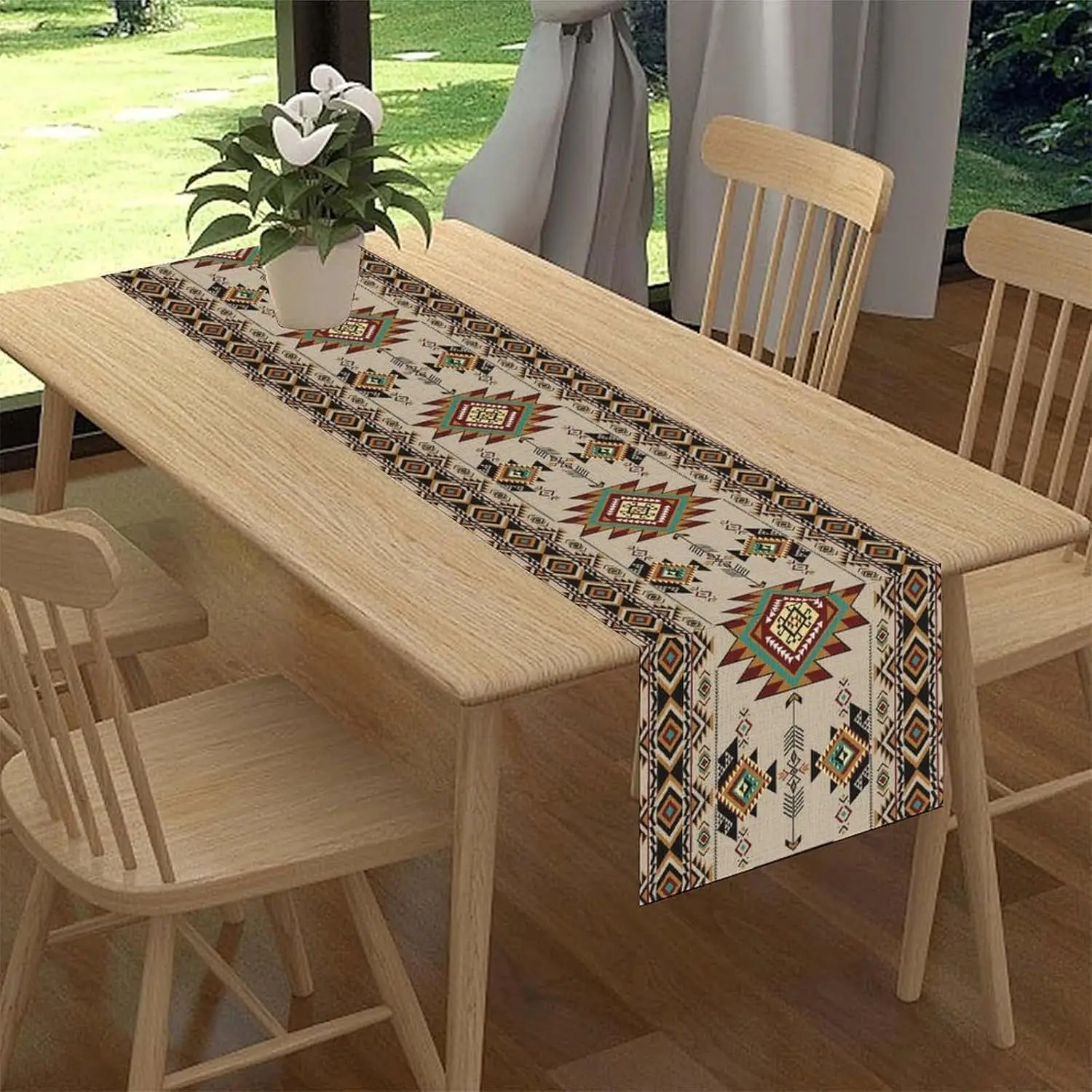 Aztec Southwest Linen Table Runner Dresser Scarf Decor Native American Style Geometric Table Runners Kitchen Dining Table Decor to home_spirit
