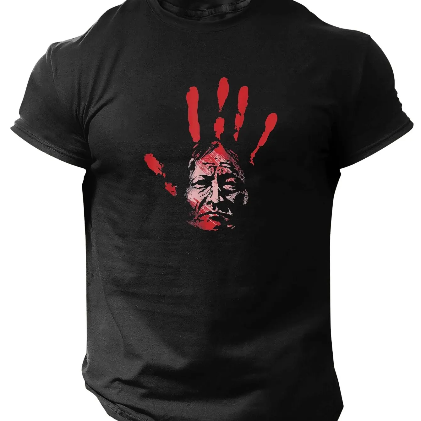 Native American Indigenous Red Hand Indian Spring and Summer Men Short-Sleeved T-Shirts Printed Tops Summer T-Shirts to heritage_clothing