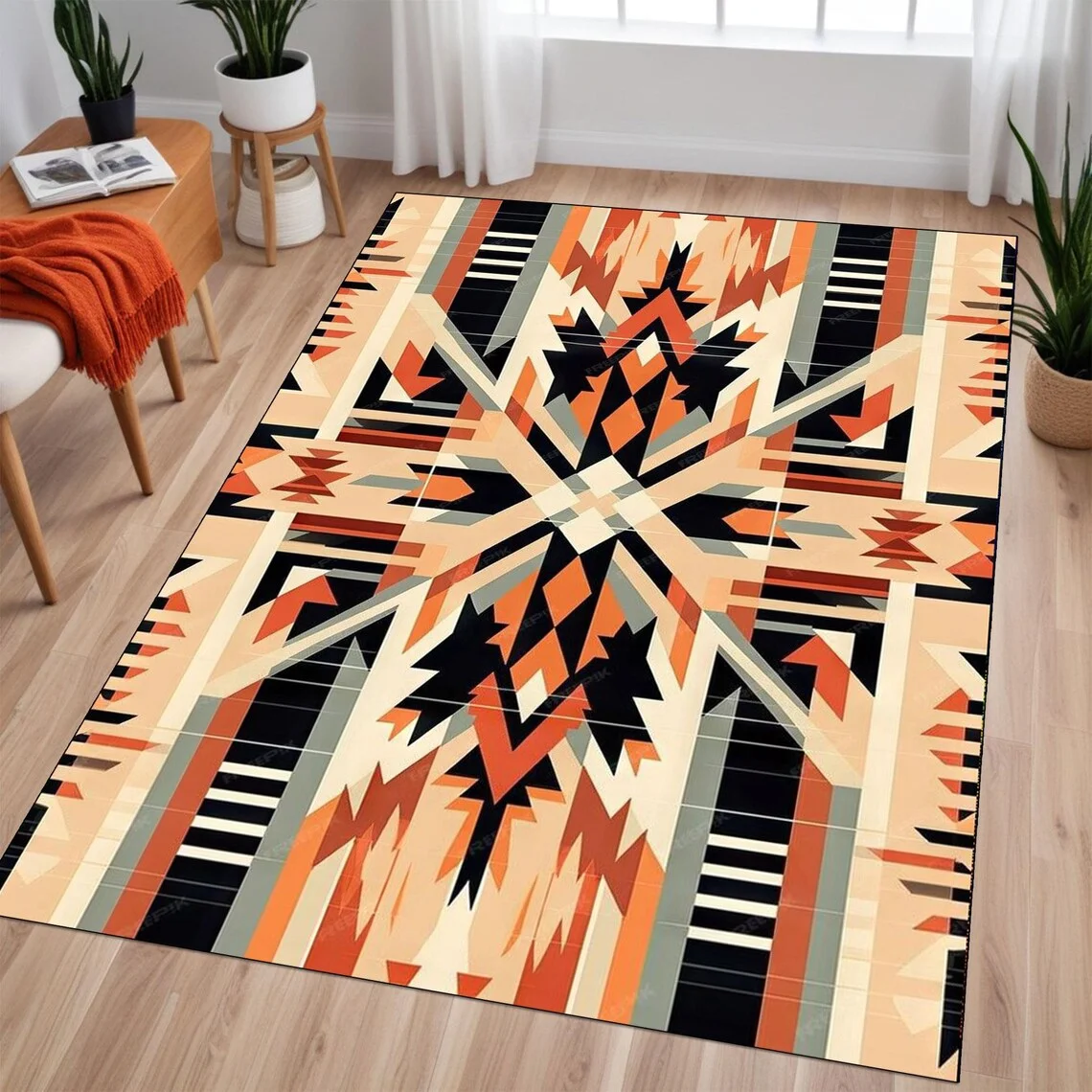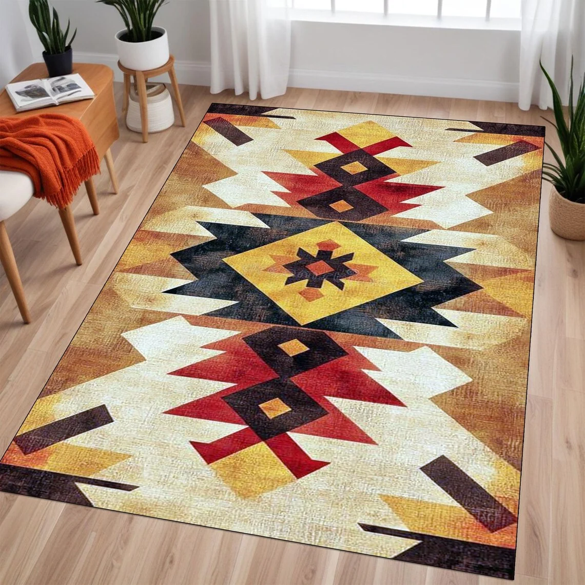 Southwestern Rug, Aztec Tribal Area Rug, Geometric Native American Design, Western Rug, Washable Boho Rug, Ethnic Area Carpet to home_spirit